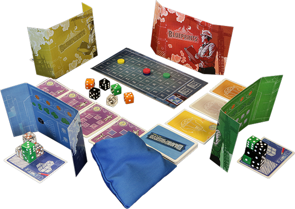 In Blueprints, players are architects who must use different colored dice to build three different structures from blueprints, with the dice providing different advantages to you. In the game, each round progresses like this: