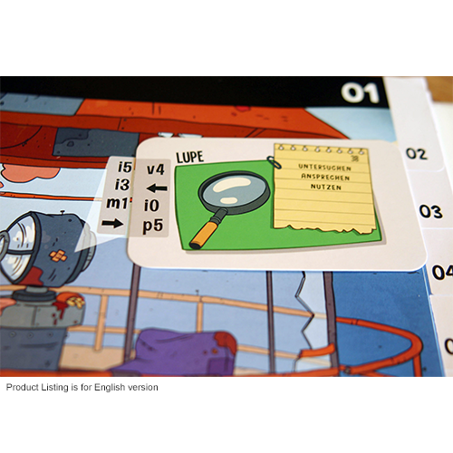 The “Interactive Adventure” series by Lookout Games is a story game in book format. Like a computer “point & click” adventure, this game tells a non-linear story full of quirky characters, useless items, and tough riddles. Explore different locations, collect and combine items, talk to different characters, and find out how the story unfolds.
