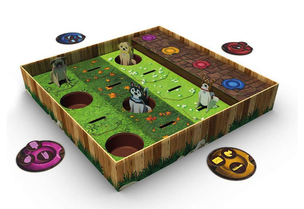 Players begin by hiding each other's toys in the yard. On a player's turn they move their dog to a new location and look inside the hole. They keep any of their on toys they find and then re-hide all others. The player to find all five of their toys wins the game.