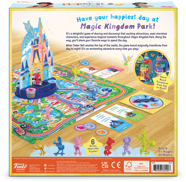 Along the way, you’ll share your favorite ways to spend the day. When Tinker Bell reaches the top of the castle, the game board magically transforms from day to night! It’s an enchanting adventure every time you play!
