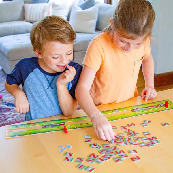 The sirens are blaring as the In a Flash Firefighters arrive. Just in time too, because the bales of hay on farmer Rudi's farm are on fire! Help try to put out the fire but watch out! The water hoses are all in a jumble. The first person to untangle and lay out their hose tiles to reach the fire is awarded a firefighting medal. But the fire hasn't been completely put out yet! The player who collects three medals wins. A racing arrangement game for 2-4 firefighters.