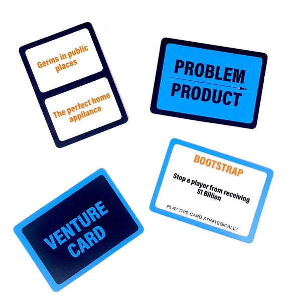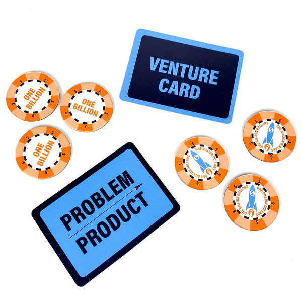 Draw a card to get a problem or product that only you can solve. The investor gives everyone 2 minutes to come up with their best pitch ideas and then pitch it. Whoever comes up with the best new solution or product for their topic gets A BILLION DOLLARS (okay, a billion dollar chip). The player with the most money at the end wins!