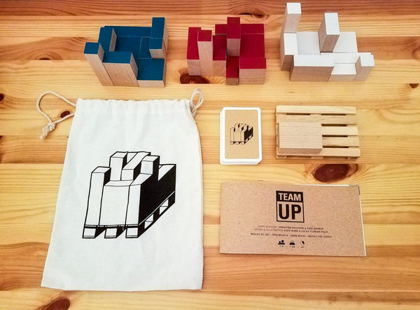 If you have ever worked in a game store, at a logistics company, or for a game publisher, you understand the theme in Team UP! It all starts with a pallet and multiple boxes of different shapes that you need to stack on top of it.