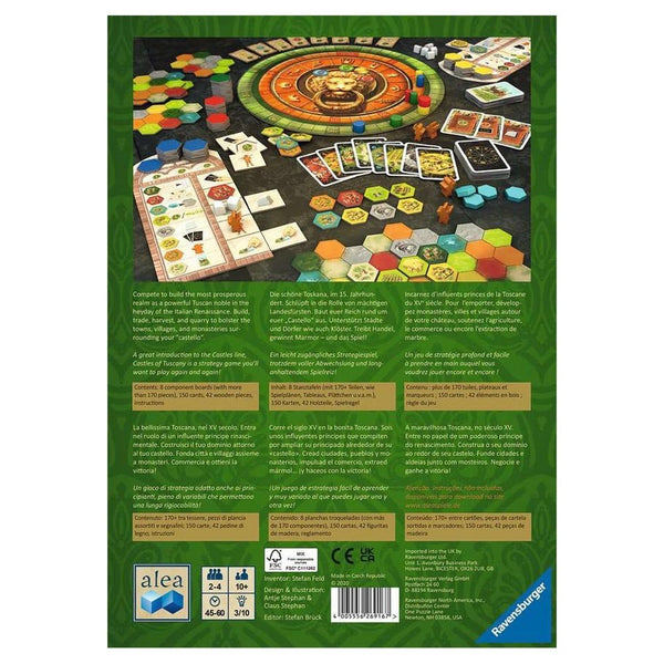 Love the The Castles of Burgundy, but looking for a more approachable and streamlined experience? Look no further! The Castles of Tuscany offers the same tile placement- and victory pointbased gameplay in a 45-60-minute experience. Stellar gameplay and gorgeous artwork by the Ravensburger North America team make The Castles of Tuscany a must-own for fans of a lea and euro-style games.