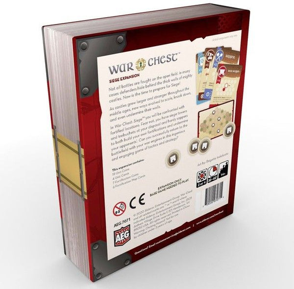 In War Chest: Siege, you will be confronted with fortified locations. Fear not, you have siege towers and trebuchets at your disposal and hardy sappers to both build your own fortifications and undermine your opponents'. Can you successfully return to the battlefield with your war engines in this ingenious and engaging game of tactics and strategy?