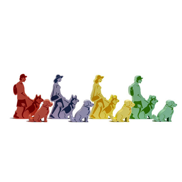 As local dog walkers, you and your friends are trying to set tails wagging by taking the neighbourhood pups on a trip to the dog park. Over four rounds you’ll have the chance to earn the reputation of the best dog walker around by adding dogs to your kennel, walking them through the park, and navigating your fellow walkers along the way.