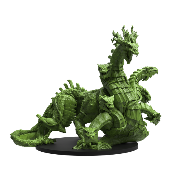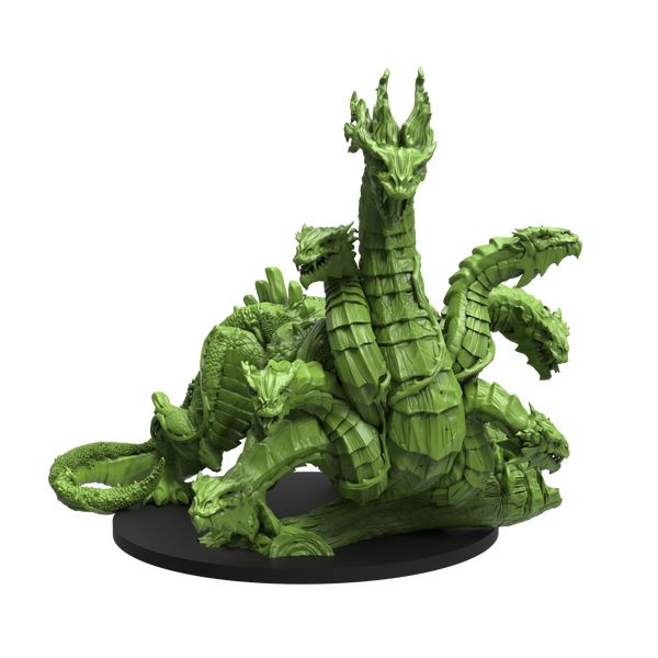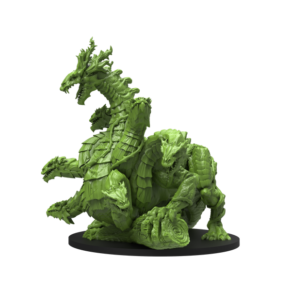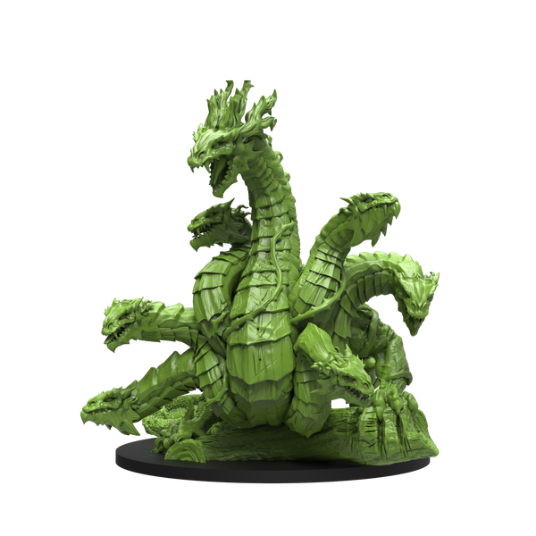 A reptilian horror, the hydra oozes corruption. Its mere presence has twisted the plants and warped the creatures of the fetid swamp it calls home. With many heads to contend with—each one boasting animal cunning, a winding neck, and sharp teeth—careless trespassers will soon find themselves trapped in a thicket of snapping jaws.