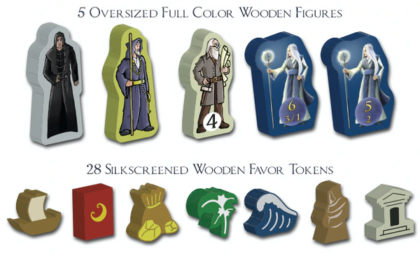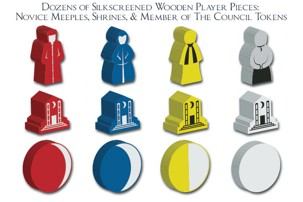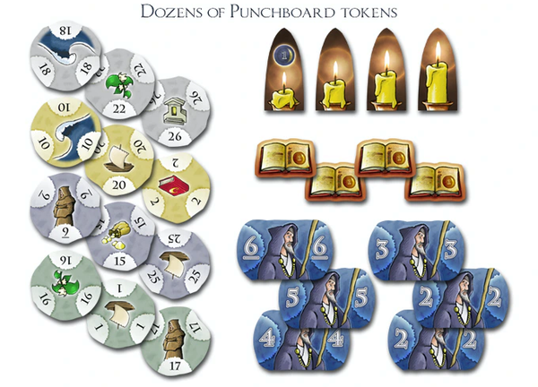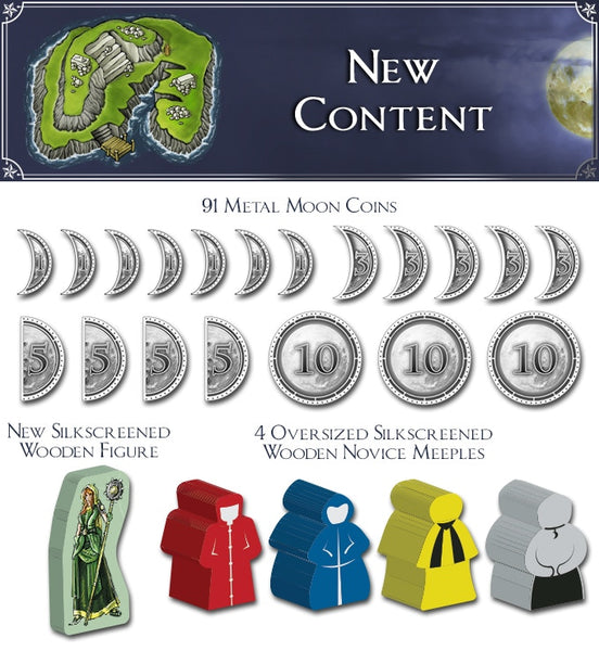 Also includes the Metal Coins upgrade pack, featuring over 90 metal coins in 4 denominations, and plus rules and components for new Abbess and Preacher game content!
