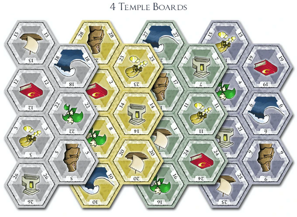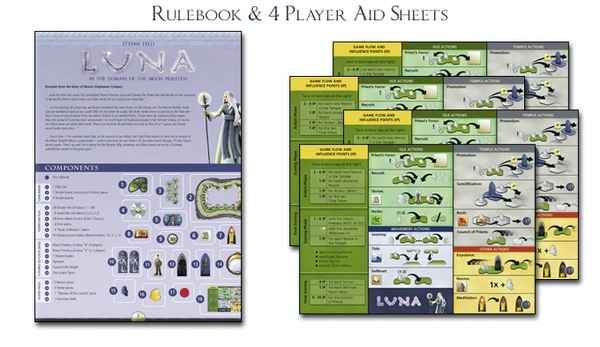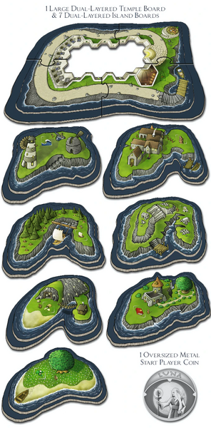 In Luna, the players will take on the role as a head of a priestly order. You will direct your followers to travel to mystical islands and partake in divine worship. They will work at the temple and create shrines to venerate their religious beliefs. With 14 different actions at your disposal, it would seem that the possibilities are endless, but as your opponents pass on their turns, your time to act will grow short! This makes Luna not only a deeply strategic experience, but a highly interactive one as well!