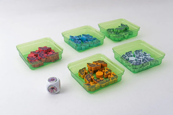 Mariposas is played in three seasons. In general, your butterflies will try to head north in spring, spread out in summer, and return south in the fall. At the end of each season, there is a scoring round. At the end of fall, the player with the most victory points has the most successful family of butterflies and wins the game.