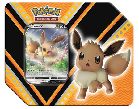 More Pokémon V are here! Choose the gigantic crushing strength of Eternatus V, the peerless courage of Pikachu V, or the loyal heart of Eevee V in the Pokémon Trading Card Game: V Powers Tin. Each of these fantastic tins contains a powerful Pokémon V, with the spirit and will to overcome, outfight, and win it all in your next Pokémon battle!