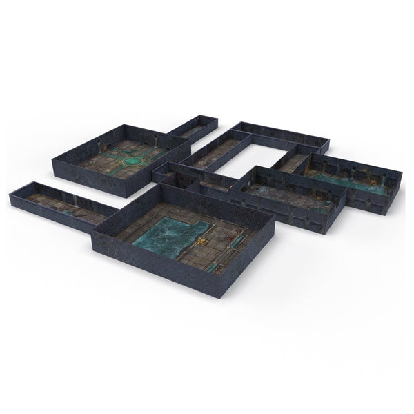 No prep time, quick set up, easy storage Modular Roleplaying Terrain Set. Fully immersive, out of the box 3D terrain for your RPGs and dungeon crawling games! With amazingly detailed art printed in every box, and 1″ x 1″ grids discreetly layered into the environment, Tenfold Dungeons provides a high-quality, atmospheric play space for all your tabletop needs. Along with it’s compact, lightweight design, it’s never been easier to take your high-octane adventures with you, wherever you go. Four sets available, and each contains a unique 5e adventure!