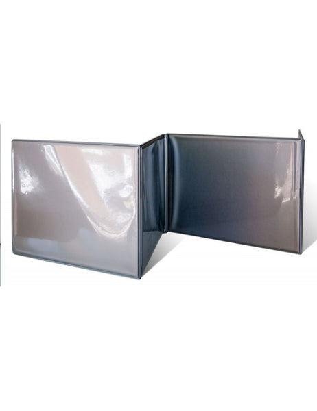 Compatible with wet erase markers and crafted of four sturdy vinyl panels with clear pockets on either side for a total of eight panels designed to hold 8.5" x 11" and A4 paper, this fully customizable game aid allows game masters to create their own rpg screens.