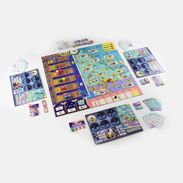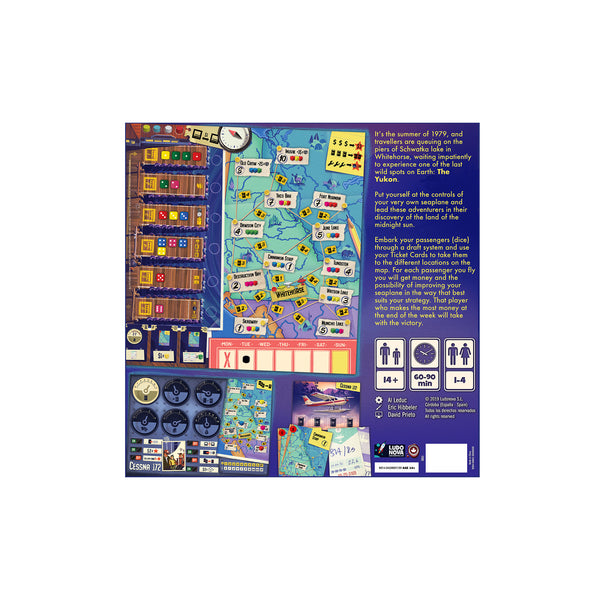 In Yukon Airways, players will be at the controls of your very own seaplane with the mission of transporting travelers to the different points of the Yukon. Players embark their passengers using a draft system and Ticket Cards to take them to the different locations on the map.