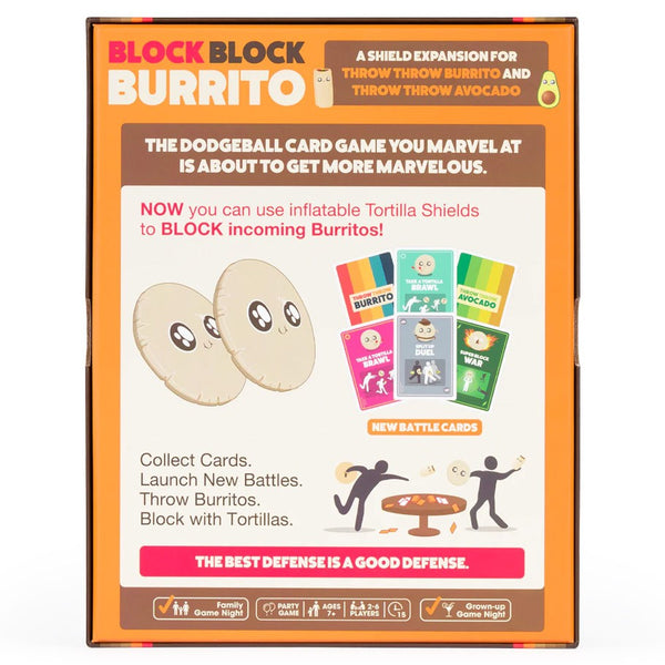 Your favorite food-based dodgeball card games now have an expansion pack! Take your battle to the next level with all new battle cards and inflatable tortilla shields. Block and load!