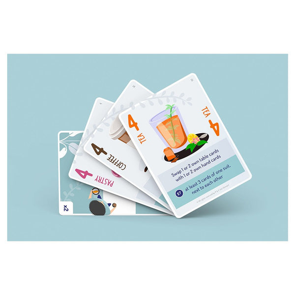 In Fika, you are a street café owner trying to outearn your competitor, by skillfully arranging the cards in your own café and manipulating those of your opponent, so that you can be the first to win two rounds.