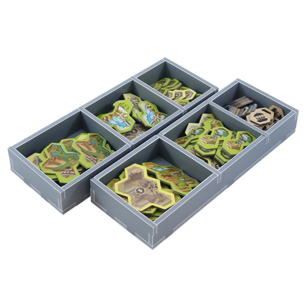 Insert compatible with Ark Nova®. The design provides both efficient storage and improved game play. Many of the trays can be utilised during the game, and they greatly aid set-up and clear-away times.