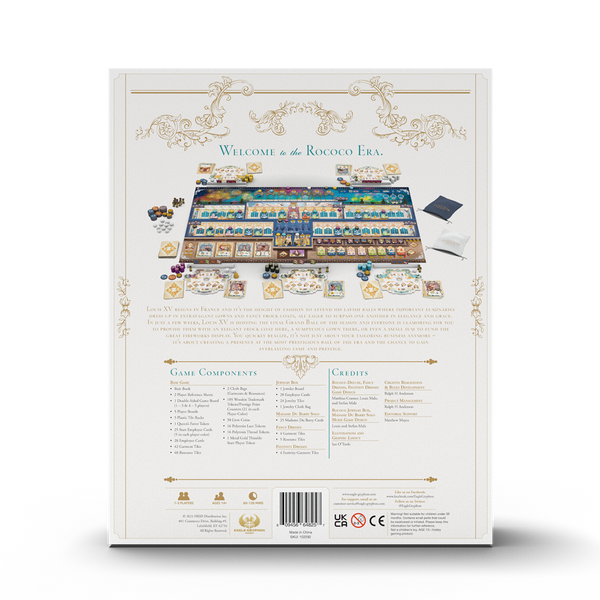 In Rococo Deluxe, you are the owner of a distinguished tailoring business. In just a few weeks, Louis XV is hosting a Grand Ball and everyone is clamoring for you to provide them with an elegant frock coat here, a sumptuous gown there, or even a small sum to fund the great fireworks display. You quickly realize that it’s not just about your tailoring business anymore – it’s about creating a presence at the most prestigious ball of the era and the chance to gain everlasting fame and prestige.