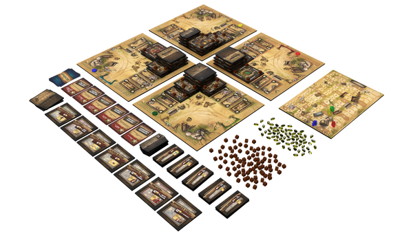 This is a building and tile placement game where the purpose of the game is to build the best saloon. The game is played by each player taking a board and then taking turns going clockwise from the first player earning gold, taking an action, building and collecting bonuses.