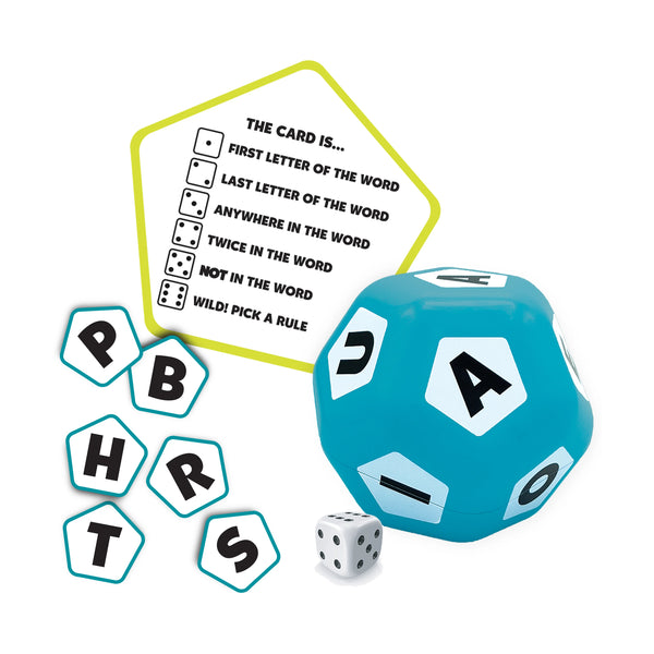 Irritable Vowels is the jumpy bumpy word game where the vowels have a mind of their own! When the vowel device settles on a vowel, all players race to create a word using the top letter and the cards. Can you create a word before the vowels go crazy again? Be the player with the most cards at the end to win this game that's full of vowel movements!